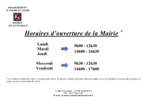 Lun, Mar, Jeu : 9h00-12h30 / 14h00-16h30 et Mer, Ven : 9h30-12h30 / 14h00-17h00