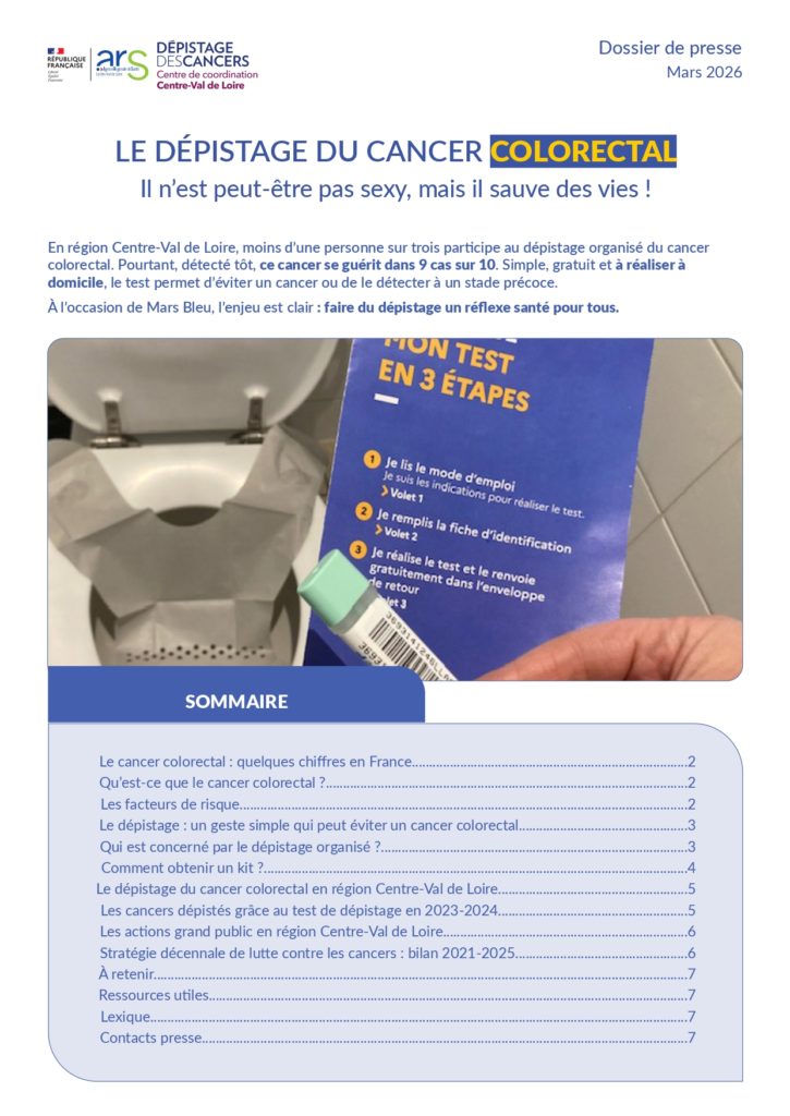 Le dépistage du cancer colorectal est un enjeu majeur de santé publique.En région Centre-Val de Loire, moins d’une personne sur trois participe au dépistage organisé. Pourtant, détecté tôt, ce cancer se guérit dans 9 cas sur 10. Le test est simple, gratuit et à réaliser à domicile.Entre 2023 et 2024, seulement 29,6 % des femmes et des hommes invités ont réalisé leur test de dépistage en France. La mobilisation des collectivités locales est donc essentielle pour améliorer cette participation.