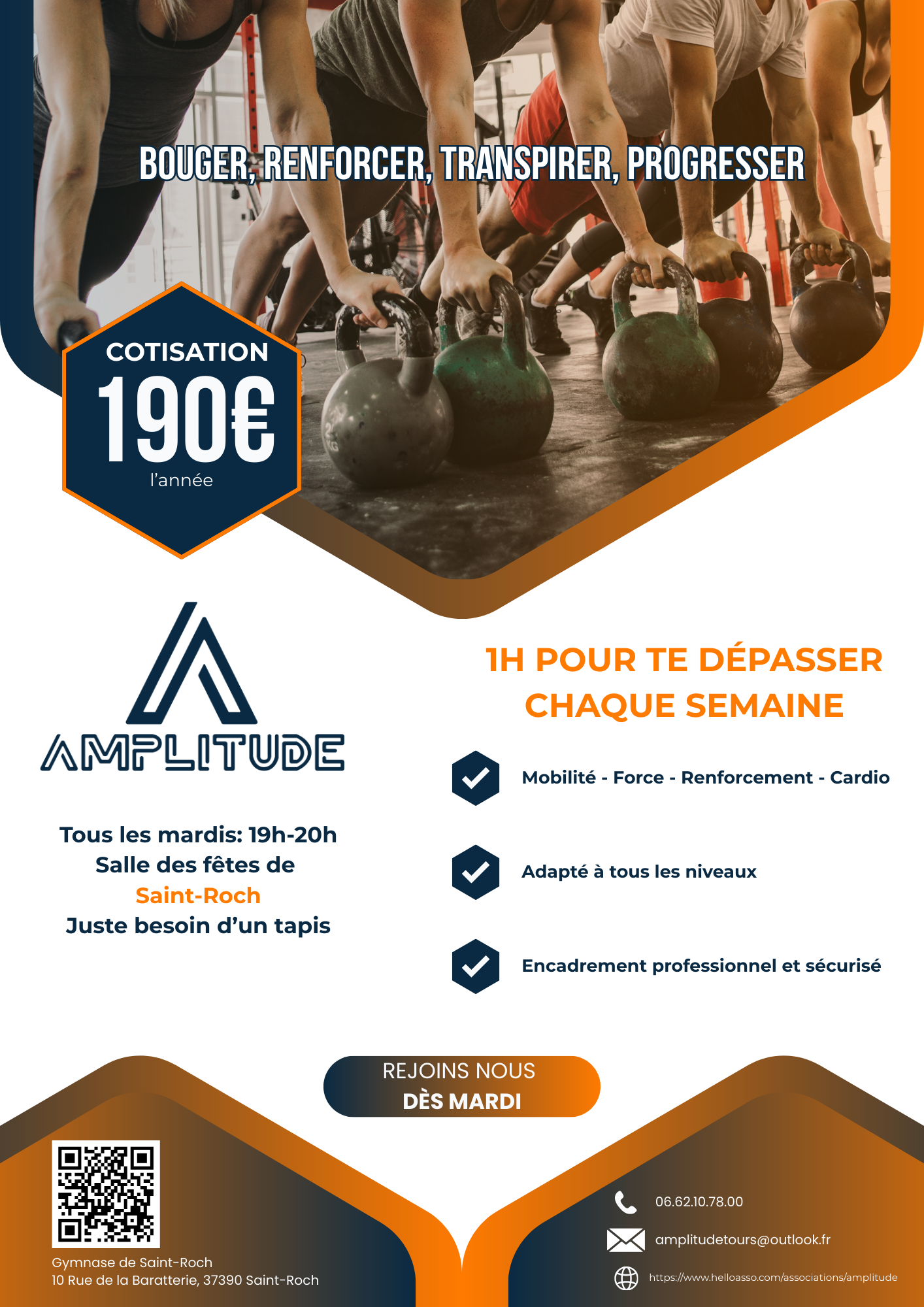 L’association « Amplitude » propose une séance d’entraînement complet, axées sur le renforcement musculaire, le perfectionnement et le cardio.
